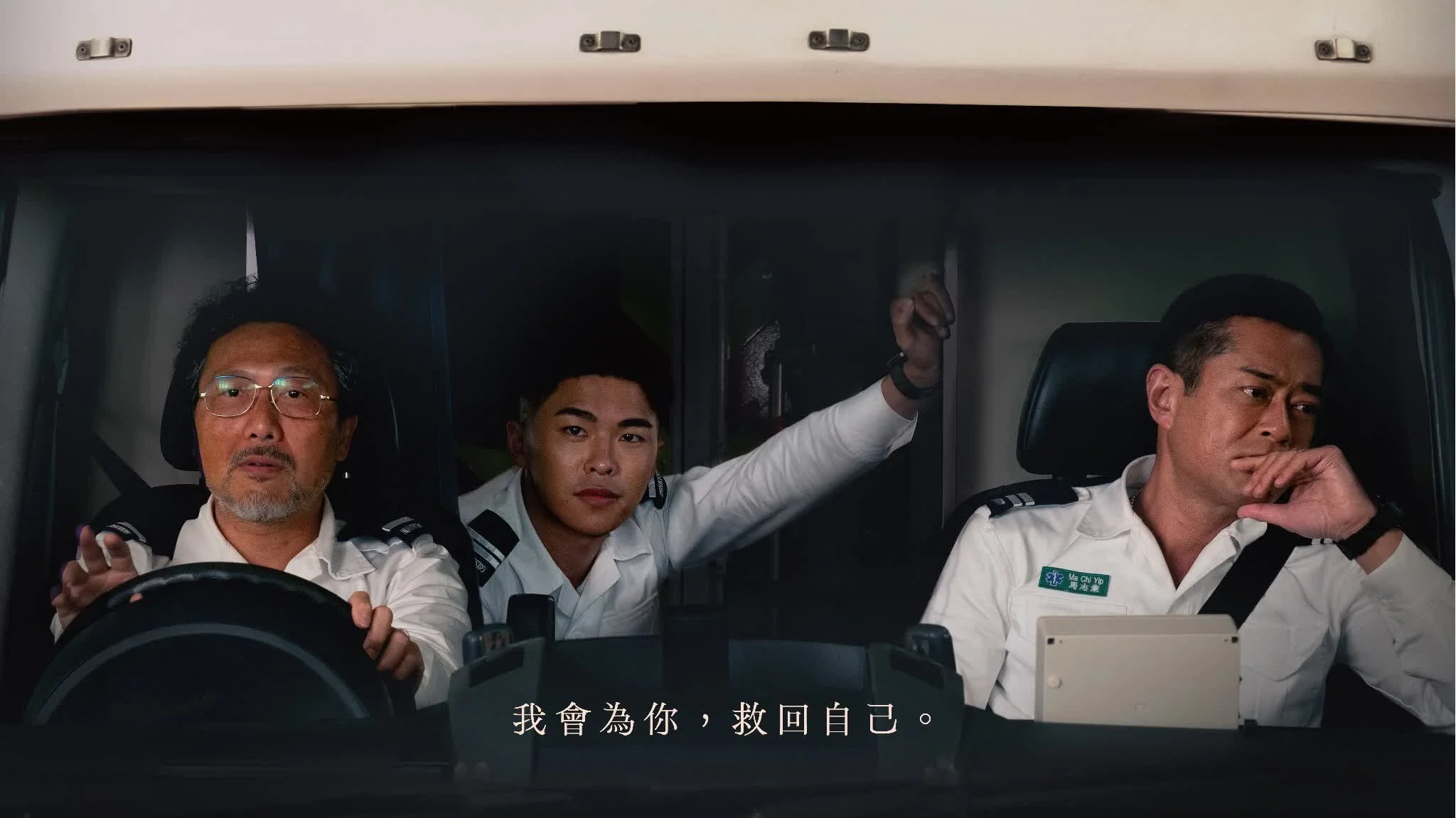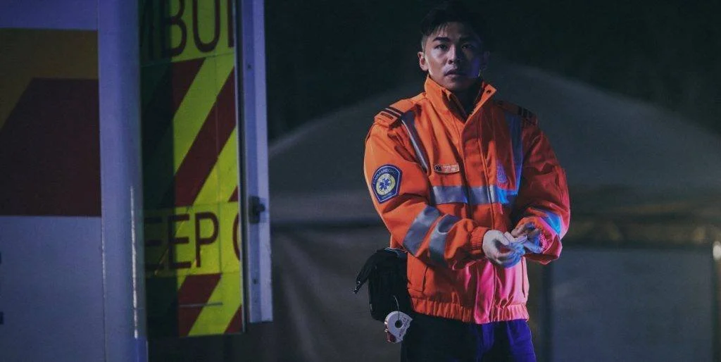 古天樂近年從商業大片轉戰本土小品,在《送院途中》達到演技新高度。他既是救護現場果斷的「馬Sir」,亦是因傷被迫與女兒分離的無力父親。一場女兒Bonnie哭訴「怕被遺忘」的戲碼,將移民潮下的焦慮具象化——當救護車鳴笛劃破夜空,呼應著海外航班起飛的引擎轟鳴。電影以「去英雄化」手法,將救護員拉回凡人身軀:他們能搶救心跳停頓的傷者,卻治不好自己破碎的家庭關係。這種「專業與個人生活」的撕裂,正是大部分在職家長的現實寫照。